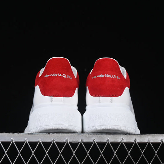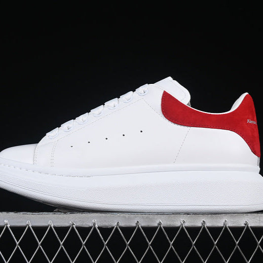 white with red suede heel