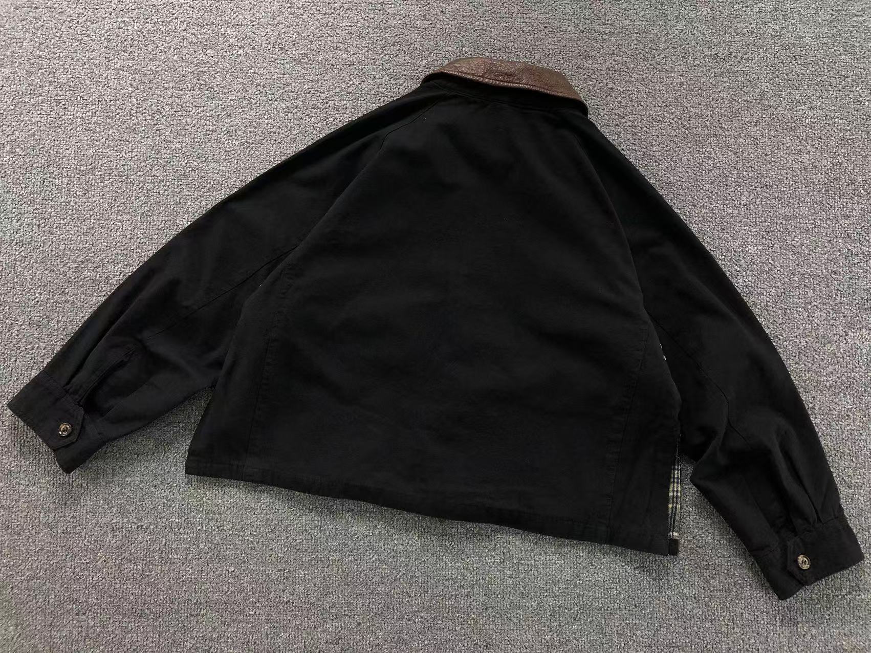 giacca vintage con colletto in pelle